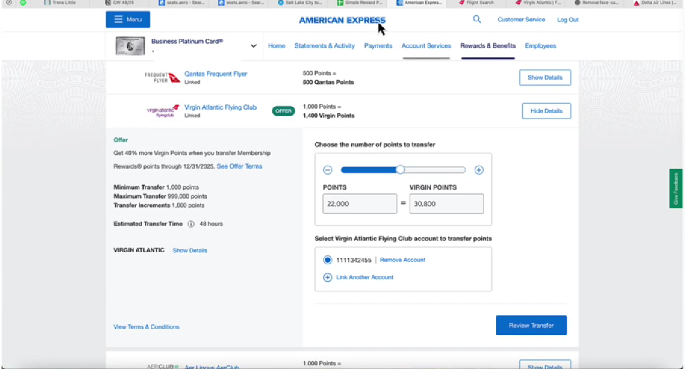 When I checked my credit card’s transfer partners, Virgin Atlantic was offering a 40% transfer bonus.