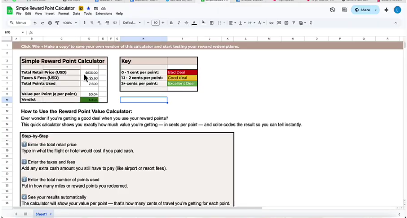 I use my Reward Travel Calculator every time I book to make sure I’m getting strong value and not wasting points.