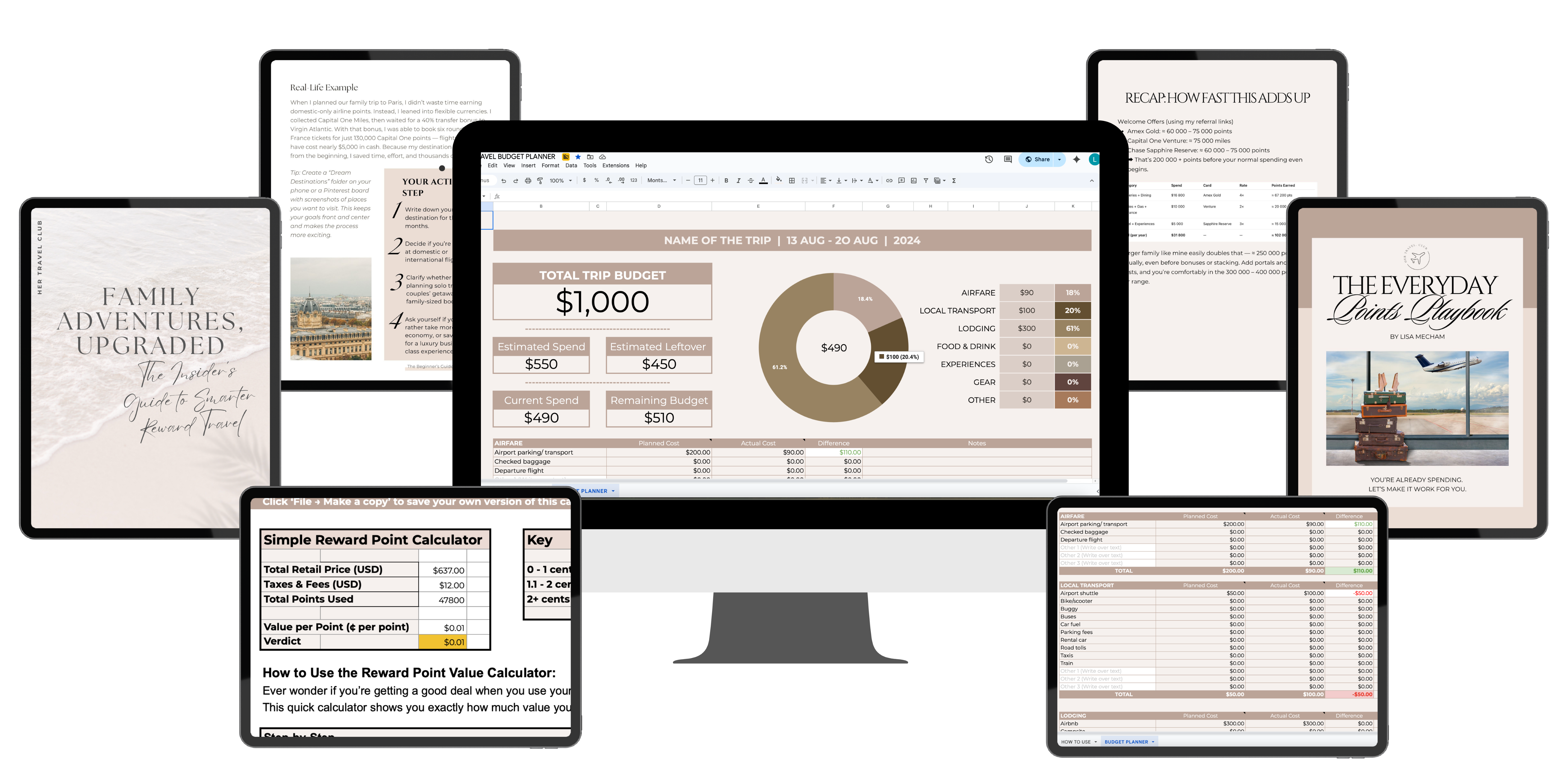 One of the silent killers of family travel joy is arriving financially unprepared for the part points don't cover. Flights and hotels might be free. The food, transportation, experiences, and spontaneous moments are not. The Travel Budget Plannerwas built specifically for this — an auto-calculating tool that tracks every category so nothing sneaks up on you after you land.